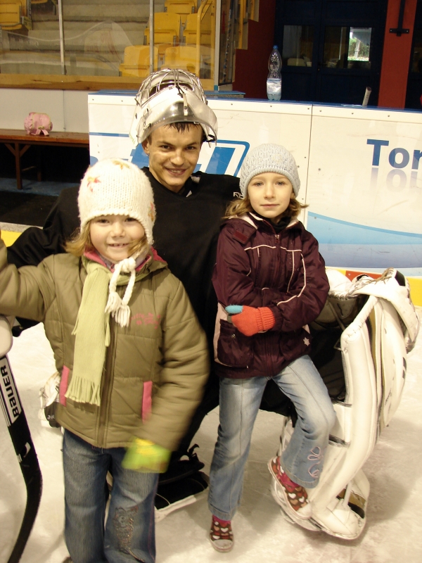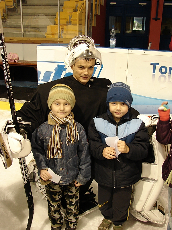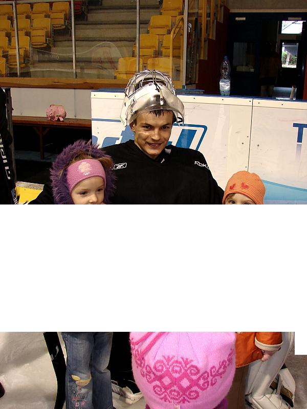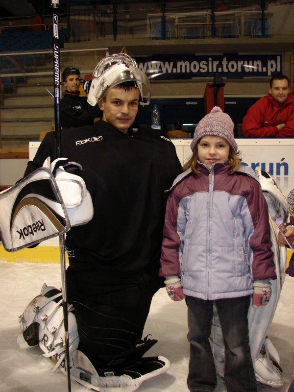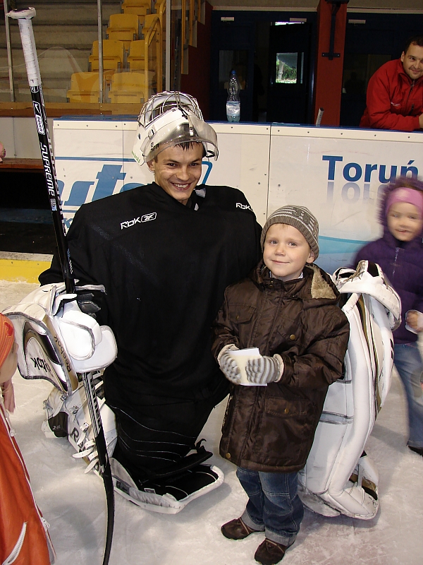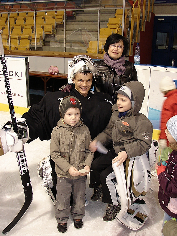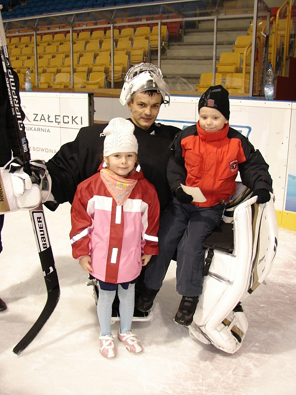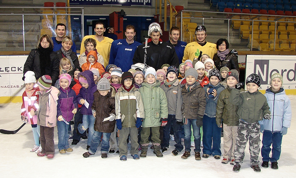 Wszystkie dzieciaki dostały najpierw zdjęcia naszych hokeistów. Po zakończeniu treningu cała grupa naszych najmłodszych kibiców udała się na taflę lodową, by tam, z bliska móc przyjrzeć się jak wygląda profesjonalny sprzęt hokejowy, dotknąć kijów, założyć bardzo duże rękawice i kaski. Była też okazja na okolicznościowe zdjęcia z zawodnikami.