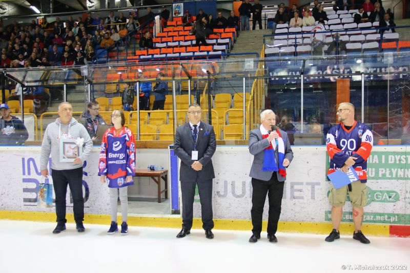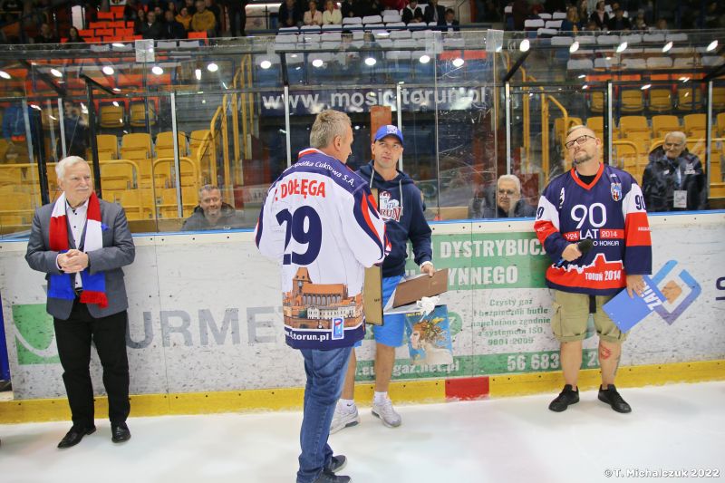 Tuż przed rozpoczęciem pierwszego w sezonie meczu ligowego kibice zgromadzenie na Tor-Torze byli świadkami oficjalnego pożegnania Jarosława Dołęgi. Zasłużony toruński hokeista, który przez kilkanaście sezonów sprawiał radość toruńskim fanom został uhonorowany okolicznościowymi upominkami.