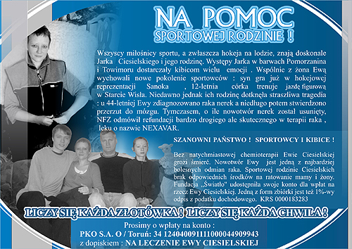 Ponadto osoby związane z toruńskim środowiskiem hokeja na lodzie planują szereg dodatkowych propozycji pomocy rodzinie Państwa Ciesielskich, w tym rozegranie „po latach” Wielkich Derbów Pomorza i Kujaw pomiędzy reprezentacjami Torunia i Bydgoszczy.