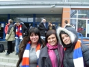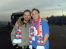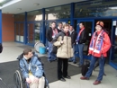 Czas szybko mijał, wjechaliśmy na autostradę i... po jakimś czasie zjechaliśmy w celu rozprostowania kości. Kilka pamiątkowych zdjęć i ponownie do autobusu. Tym razem kibice zaopatrzeni w bębny prowadzili bardzo donośny doping. Wszystko wskazywało na to, iż to będzie cudowny dzień zarówno dla toruńskich hokeistów, jak i kibiców. Szybko zrobiło się ciemno za oknami. Niedaleko granic miasta Gdańsk dołączyli do nas Policjanci. Eskorta prowadziła nas ulicami, aż naszym oczom ukazała się gdańska hala Olivia. Organizator wyjazdu poszedł kupić bilety wstępu. Kibice wysiedli już z autobusu i w nerwowym oczekiwaniu zaczęli głośny doping toruńskich hokeistów. Po krótkiej chwili znaleźliśmy się na terenie lodowiska i kierowaliśmy się w stronę sektora, który jest przewidziany dla gości.